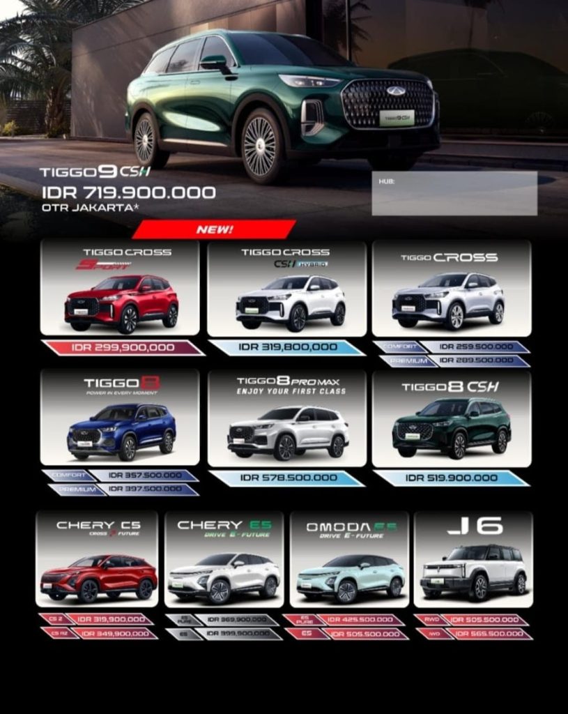 Dapatkan pelayanan terbaik pembelian mobil Chery hanya di Chery Jakarta Selatan. Layanan Konsultasi Pembelian Mobil Chery 24 Jam, Fast Response, Dan Data Dibantu Sampai ACC.